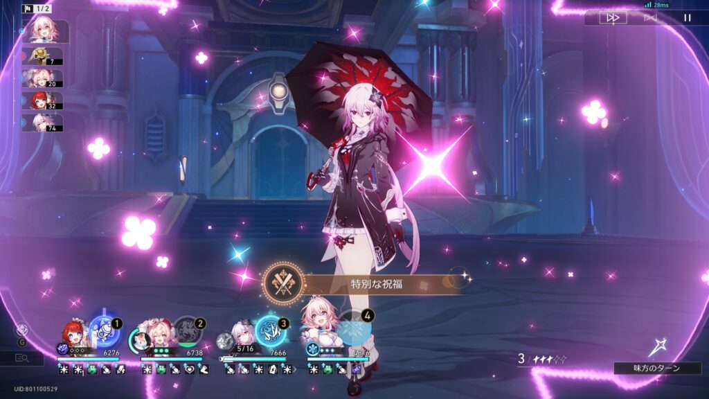 三月なのか・存護で長夜月に戦闘スキル「可愛いは正義」を使用する