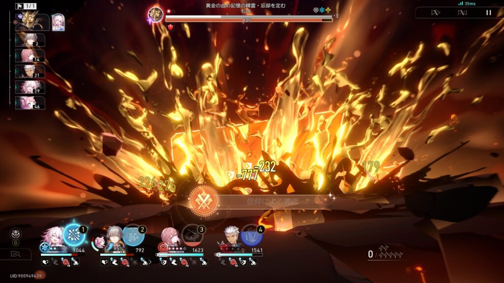 「元凶を差し出せ」に選ばれた味方が、「黄金の血の記憶の精霊・忘却を定むもの」の「罪血の梟首」攻撃を受けた後、残りHPが最大HPと同じになる