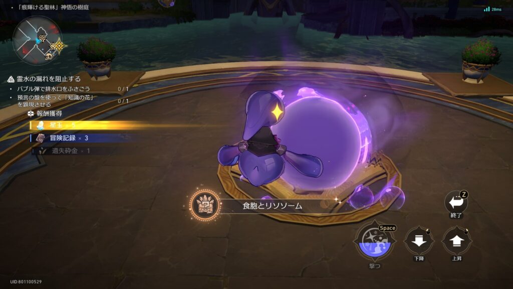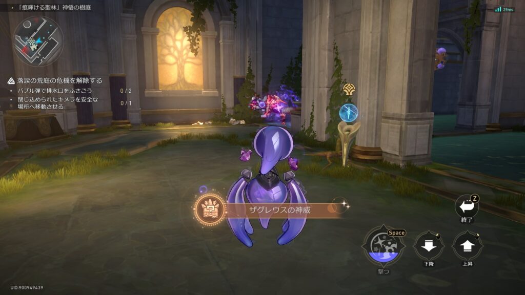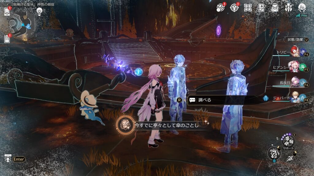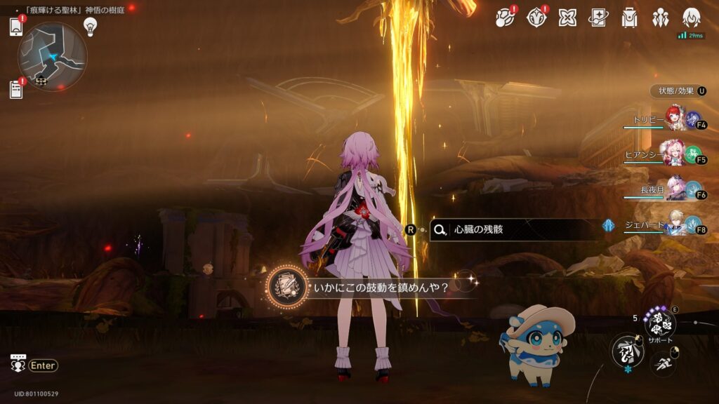 「痕輝ける聖林」神悟の樹庭で、焚心の傷跡2Fの心臓の残骸を調べる