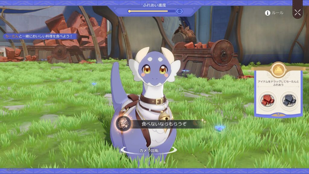 「いい天気だし、飼っちゃおう!」で、小さな大地獣に料理の味について文句を言われる(炭か草を食べさせると発生する)