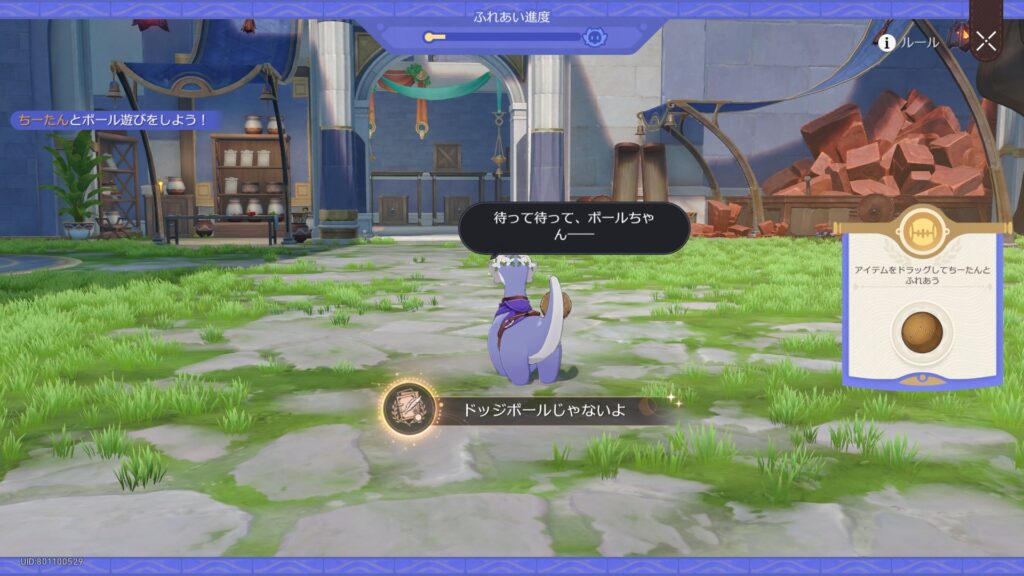 「いい天気だし、飼っちゃおう!」で、小さな大地獣と遊んでいる時にうっかりボールを当ててしまう