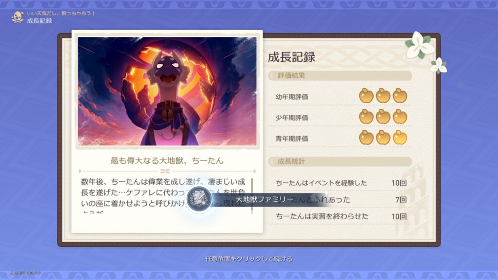 いい天気だし、飼っちゃおう!」で、小さな大地獣の3つの能力をすべて最高レベルまで成長させる