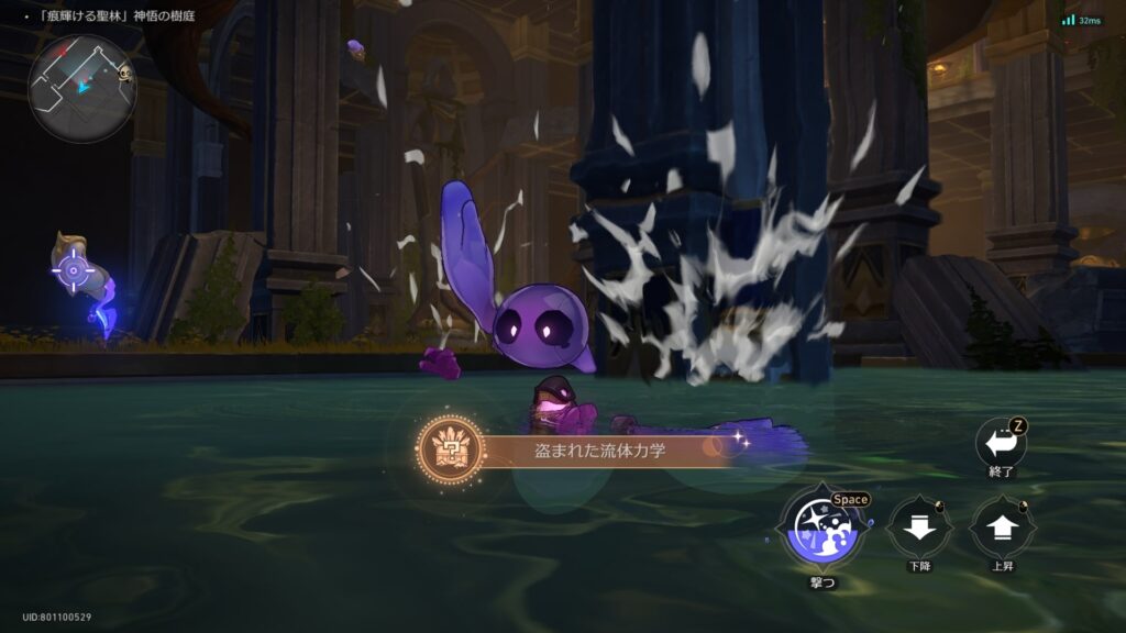 バトルズ視点で水中を5秒以上泳ぐ