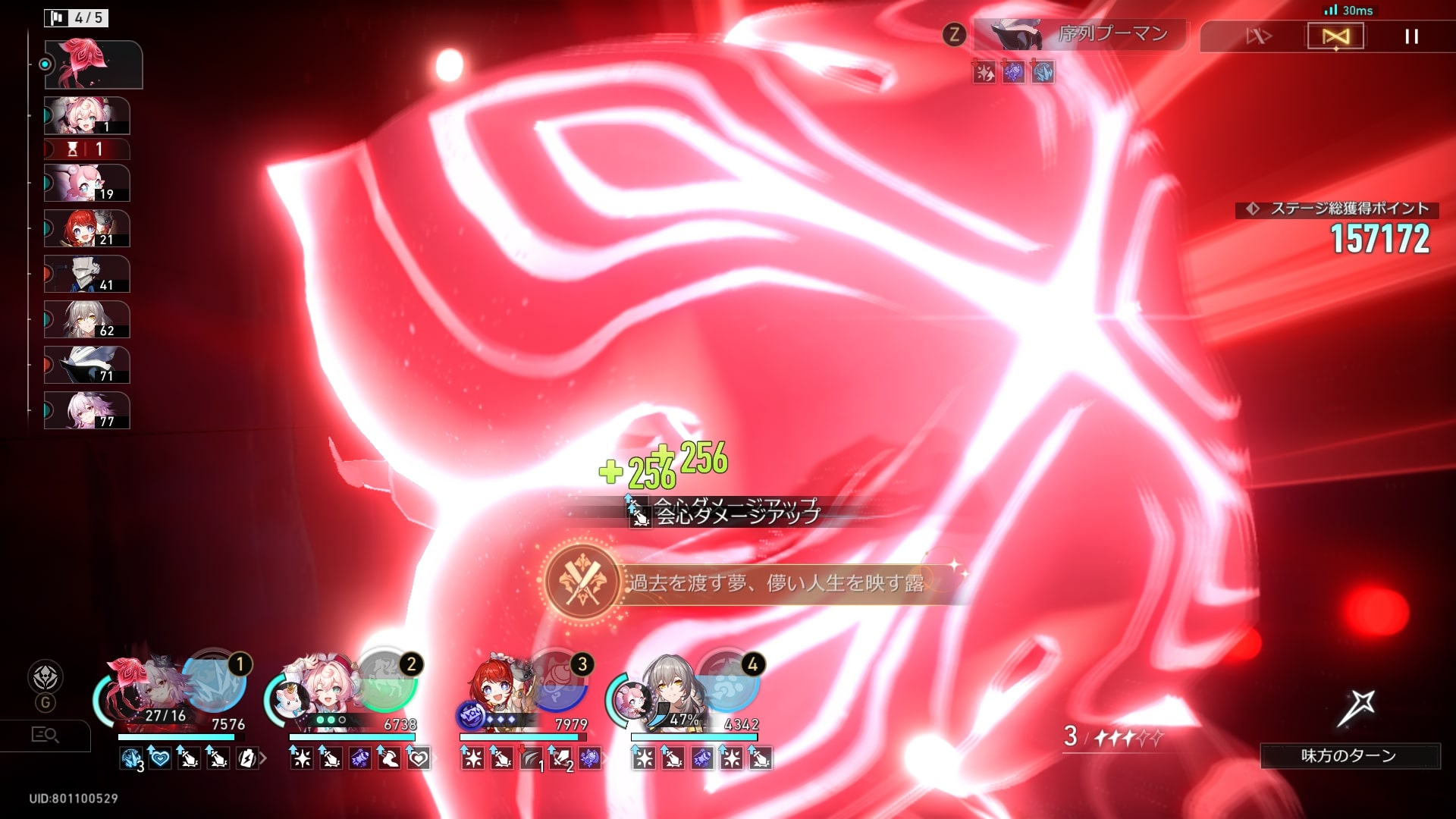 味方キャラ長夜月の「長夜」を使用して、「露のように儚い夢」を10回発動する