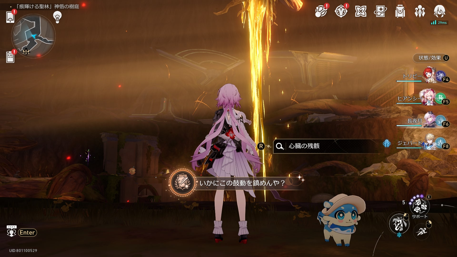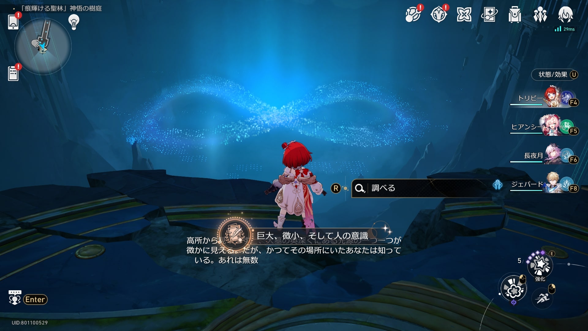 「痕輝ける聖林」神悟の樹庭で、焚心の傷跡2Fの心臓の残骸を調べる