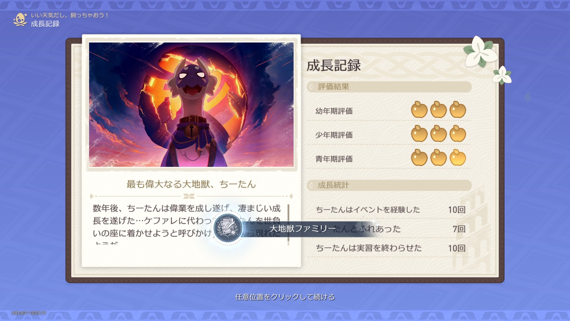 「いい天気だし、飼っちゃおう!」で、小さな大地獣からの感謝の手紙を9通受け取る