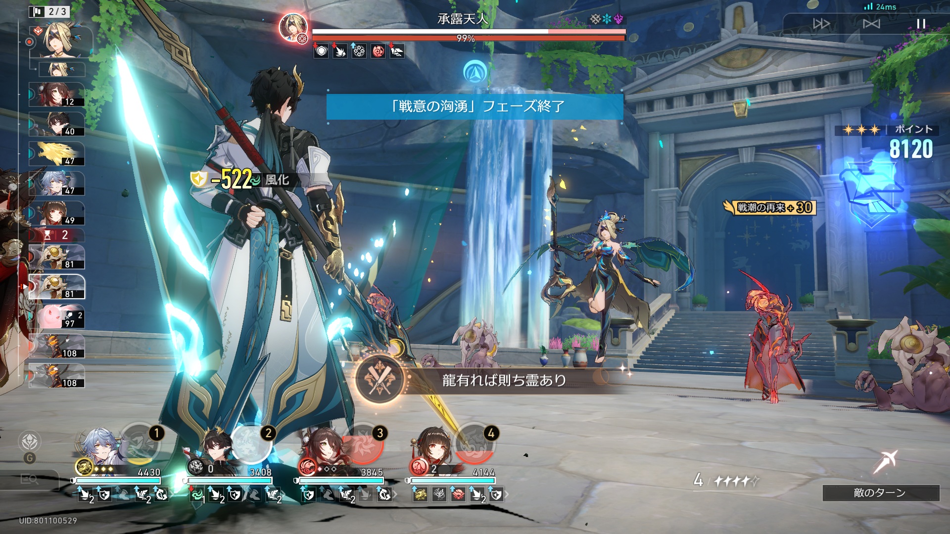 「龍霊」が召喚物を持つキャラに付いて累計5回行動する