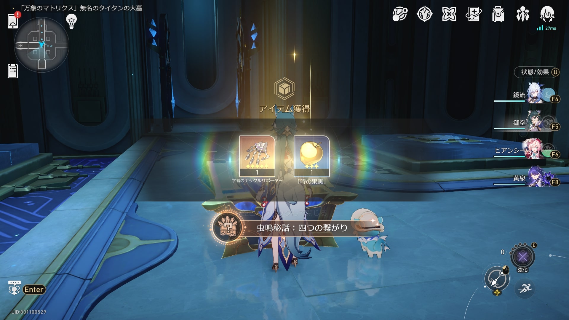 「万象のマトリクス」無名のタイタンの大墓のデミウルゴス・マトリクスの最奥で、仲間たちと共に再出発する決意を固める