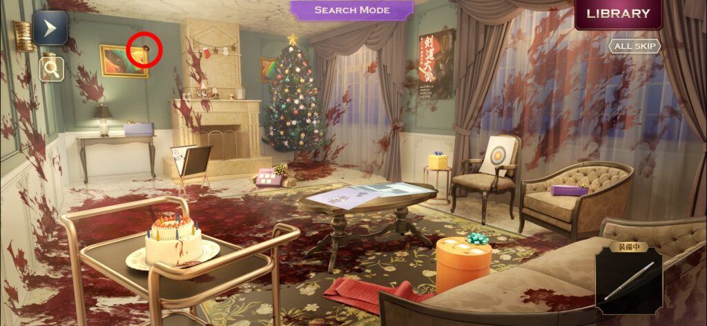 中から【剛の絵】を入手。その後部屋の真ん中に置いてある建物の図面を選択してクリア。