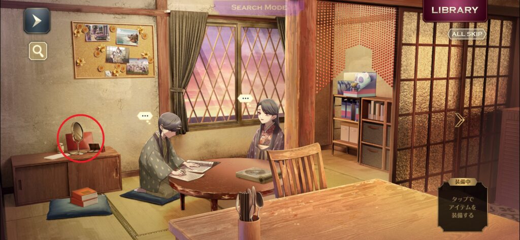左マップの鏡付近を調べます。