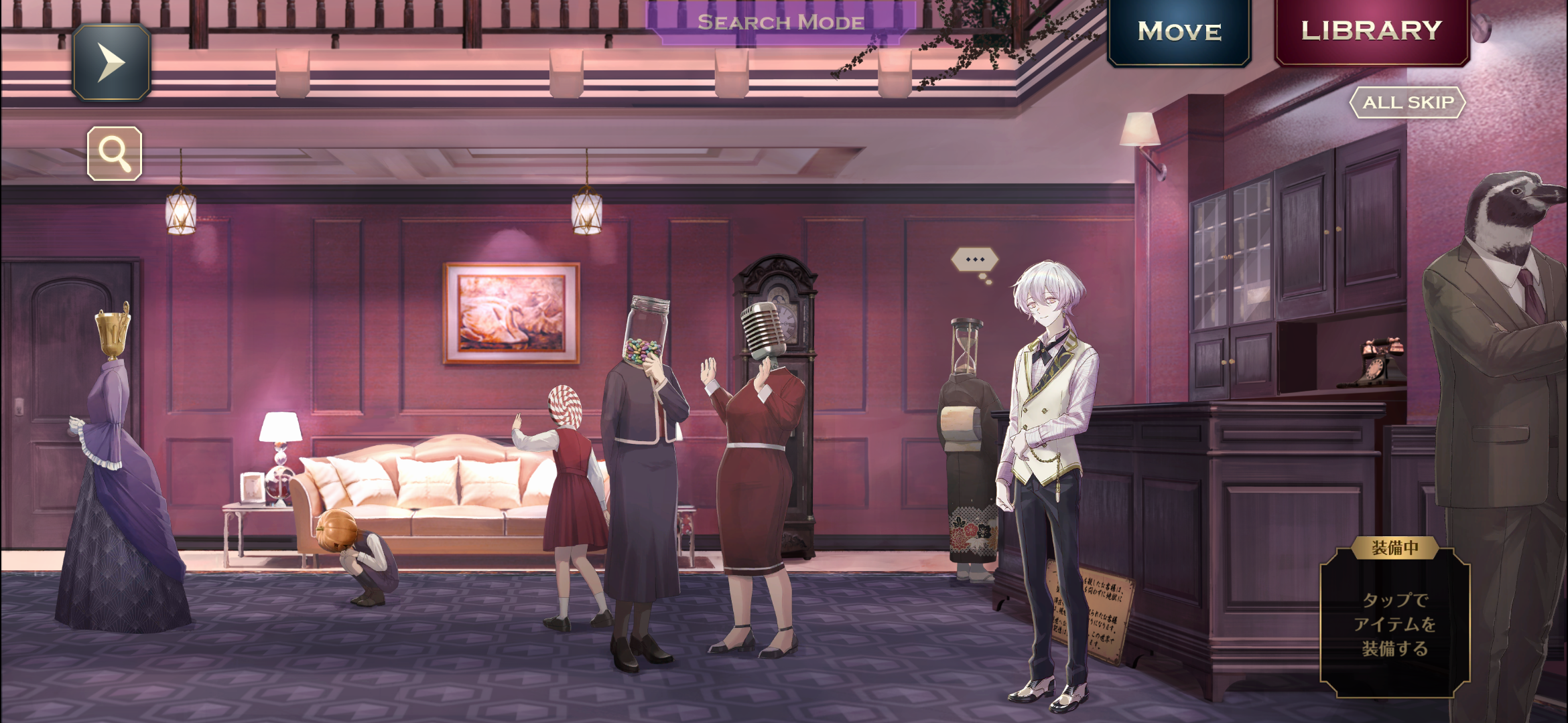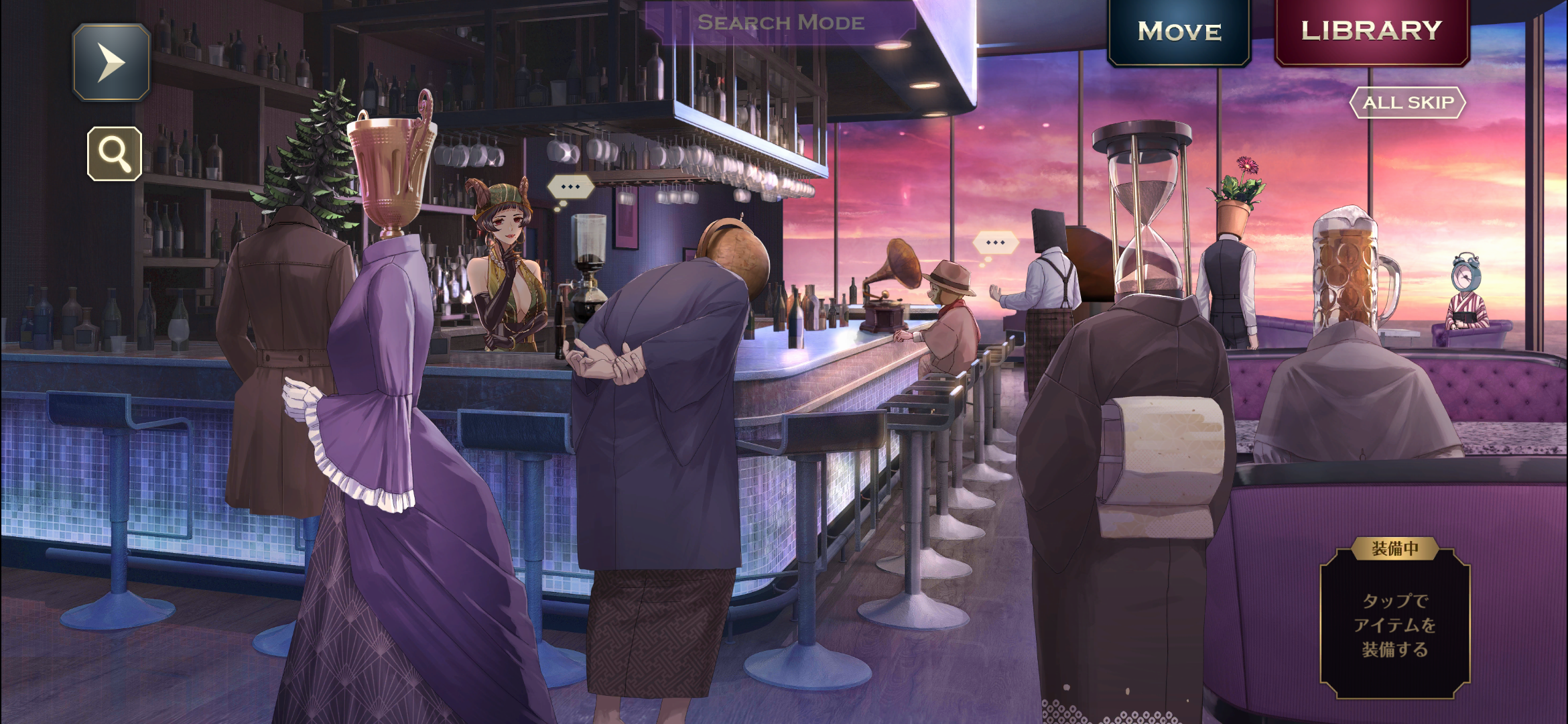 厨房の「暮愛」、ロビーの「幽蘭」、バーの「瑪瑙」「切子」に話しかけ、