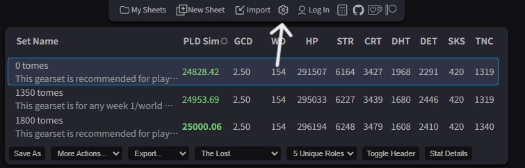 リンク先のxivgearでは画面上部にある歯車マークを押すと設定画面が開きます。