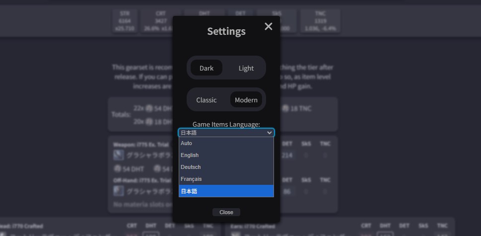 xivgear 日本語表示について