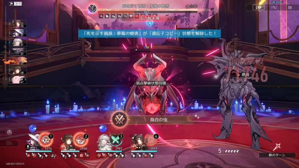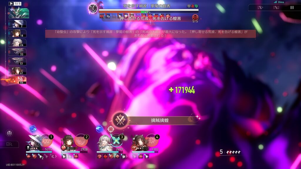 「死を示す禍源:夢魘の蝗害」との戦闘で、すべての「幼蟄虫」を倒し、その「遺伝子コピー」状態を解除する