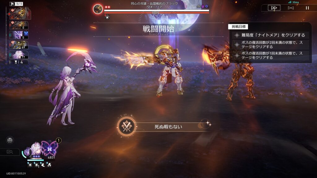 いずれかの難易度における「同心の双雄」の戦闘で、ボスの「一致団結」を1回発動させる