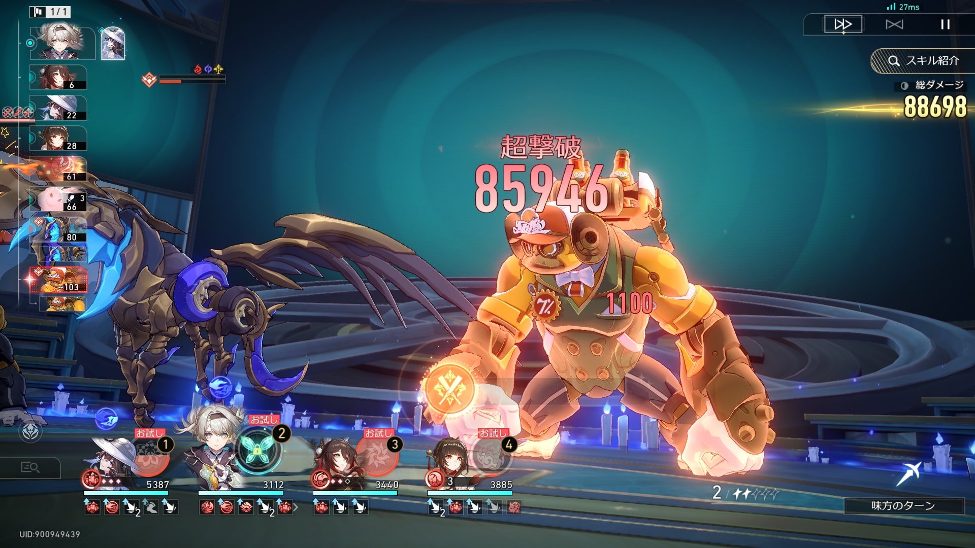 敵が靭性保護状態にある時、超撃破ダメージで敵を倒す