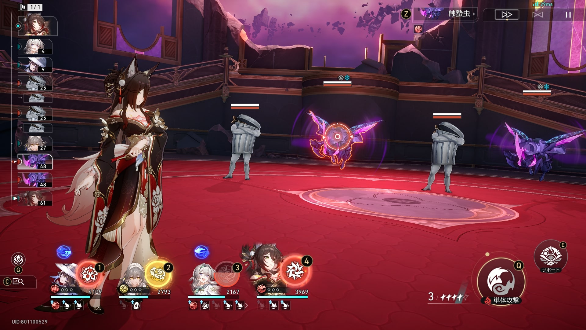 一度の戦闘で、「調和」運命の開拓者、帰忘の流離人、ダリアがそれぞれ必殺技を発動する