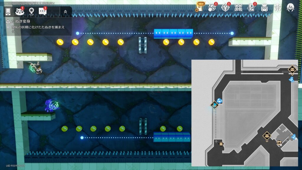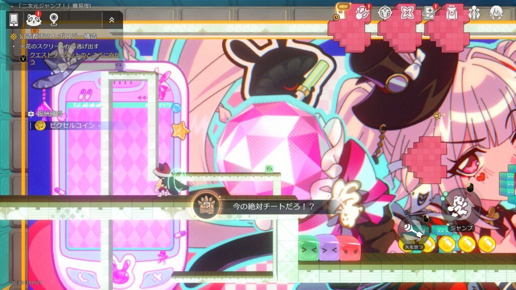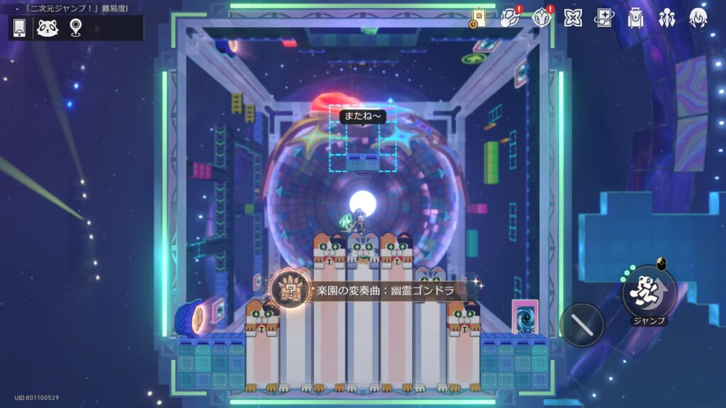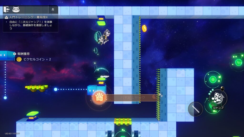 「二次元ジャンプ!」で練習ステージの隠し挑戦をクリアする