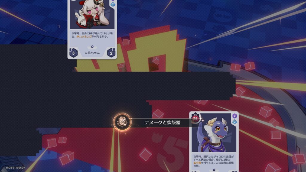 1度の戦闘で、味方キャラの火花が、「インタラクティブ・トラップ」を発動し、合計9個の「大草原」を獲得する(マネーウォーズだと取れやすい)