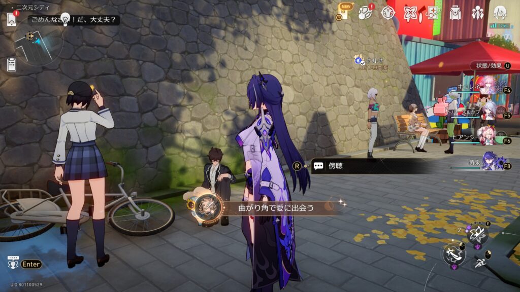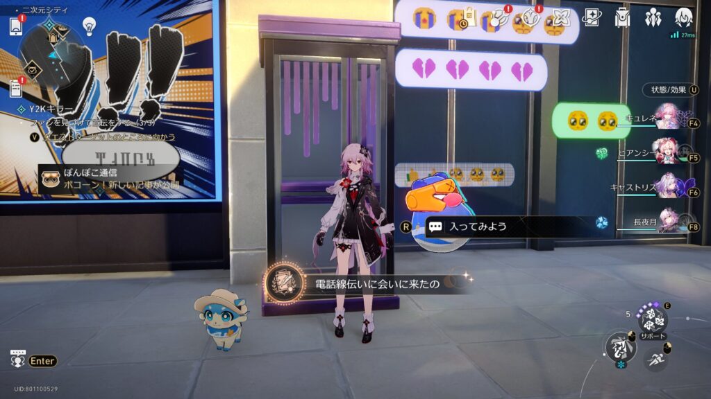 二次元シティまたは鳩川区のカラオケ前で、店内から聞こえてくる歌声をこっそり聞く