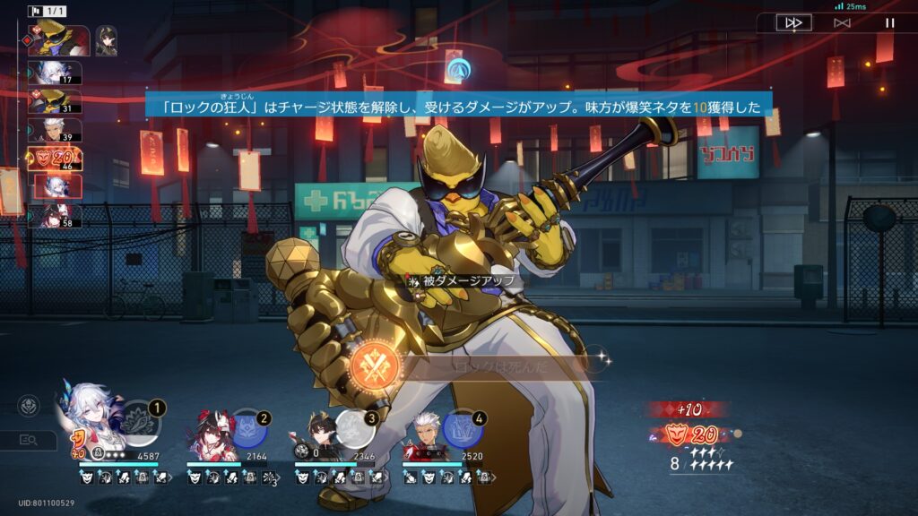 1度の戦闘で、味方の爻光が18回「大吉大利」を発動する