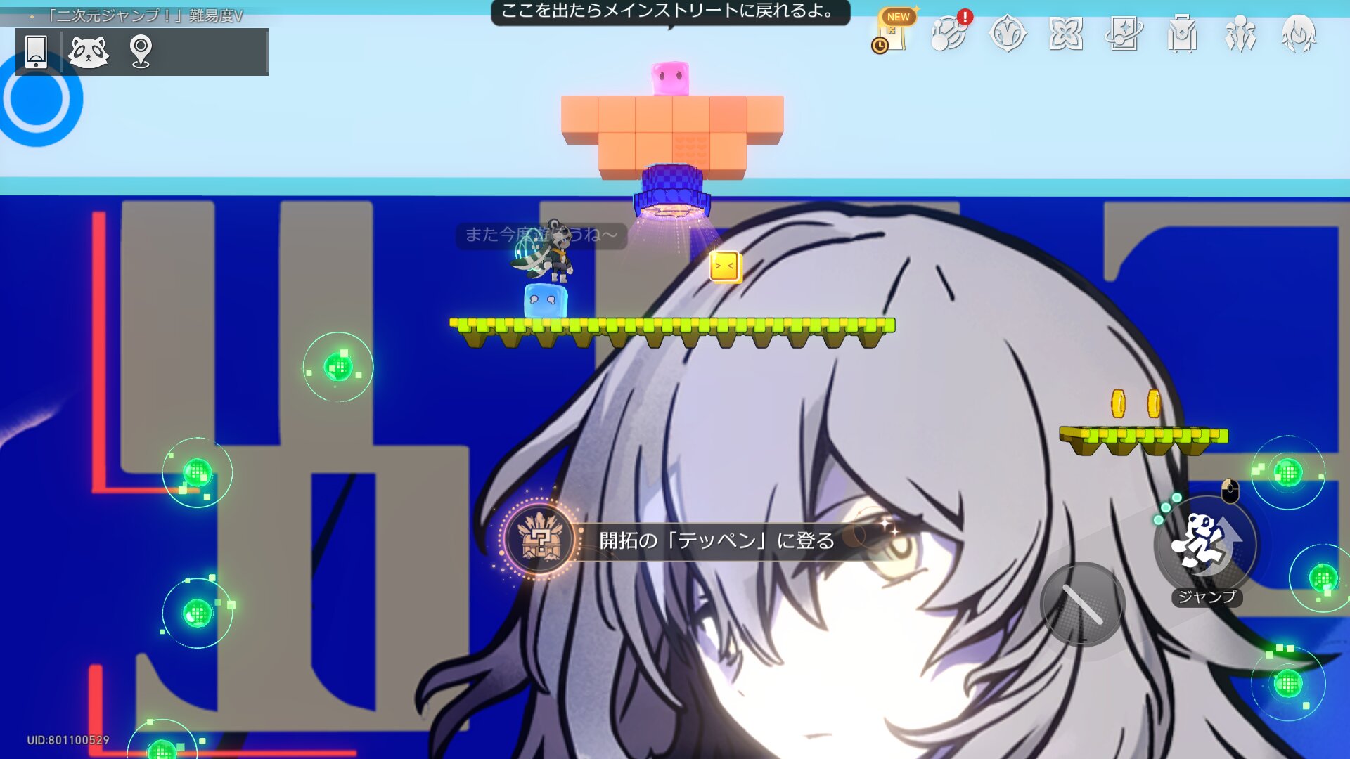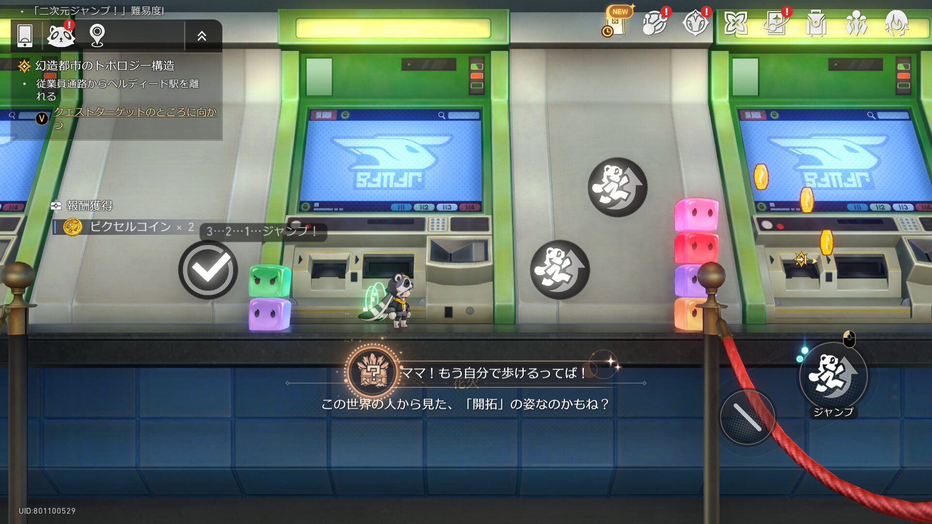 「二次元ジャンプ!」で練習ステージの隠し挑戦をクリアする