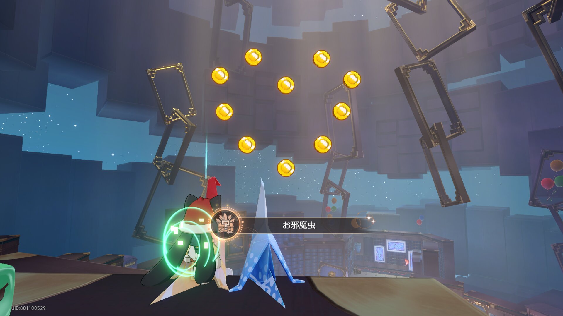 大宝物庫の2F「二次元ジャンプ!」にある仮面を撃ってコインを取る