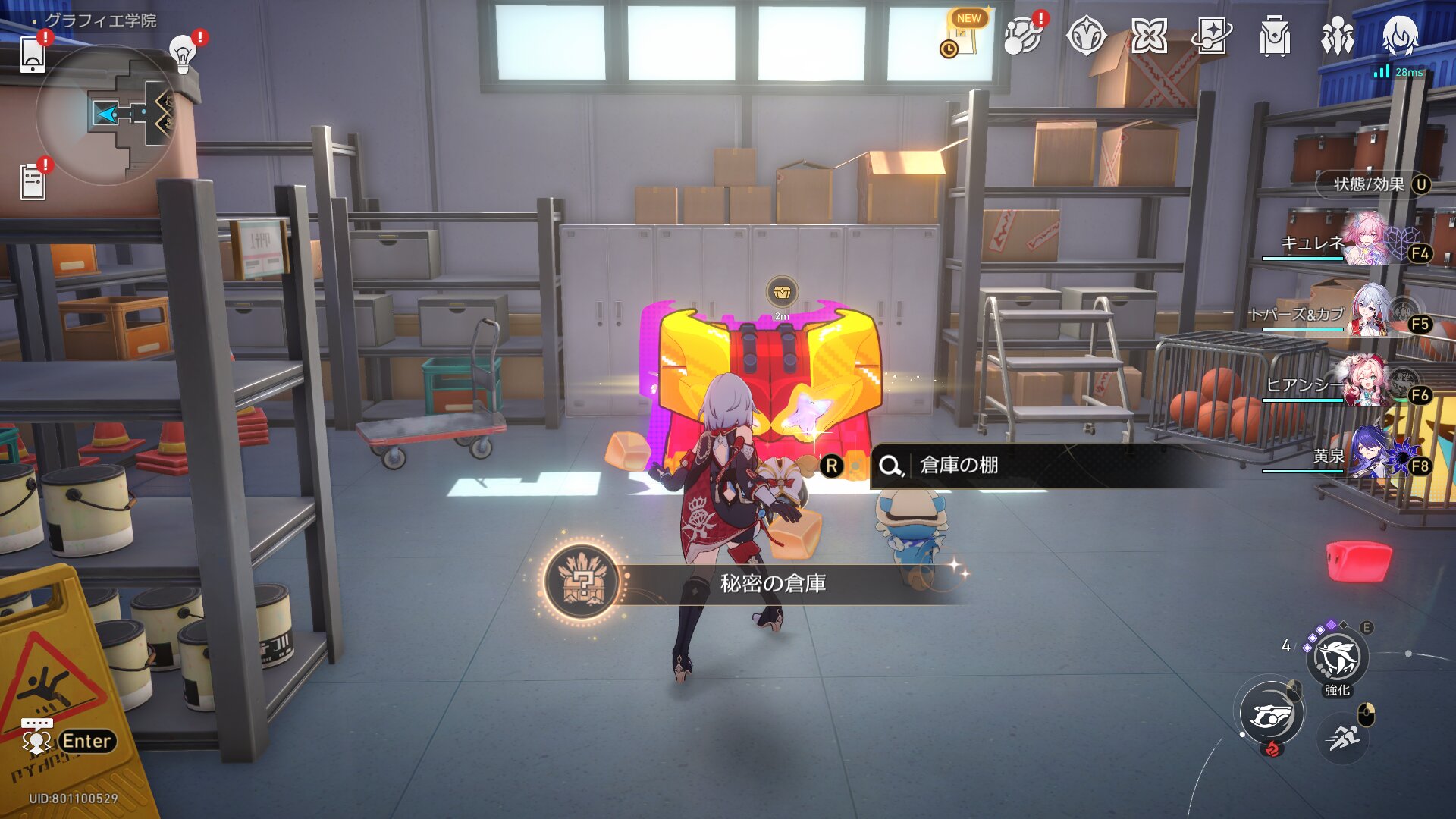 グラフィエ学院の屋内体育館にある秘密の部屋に入る