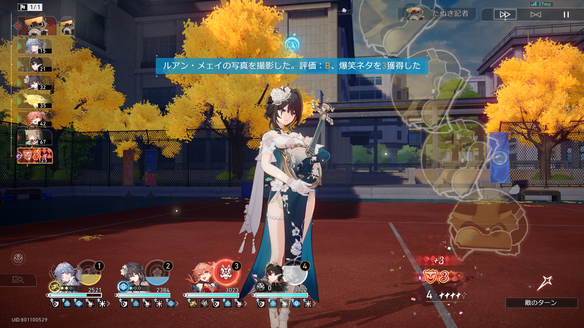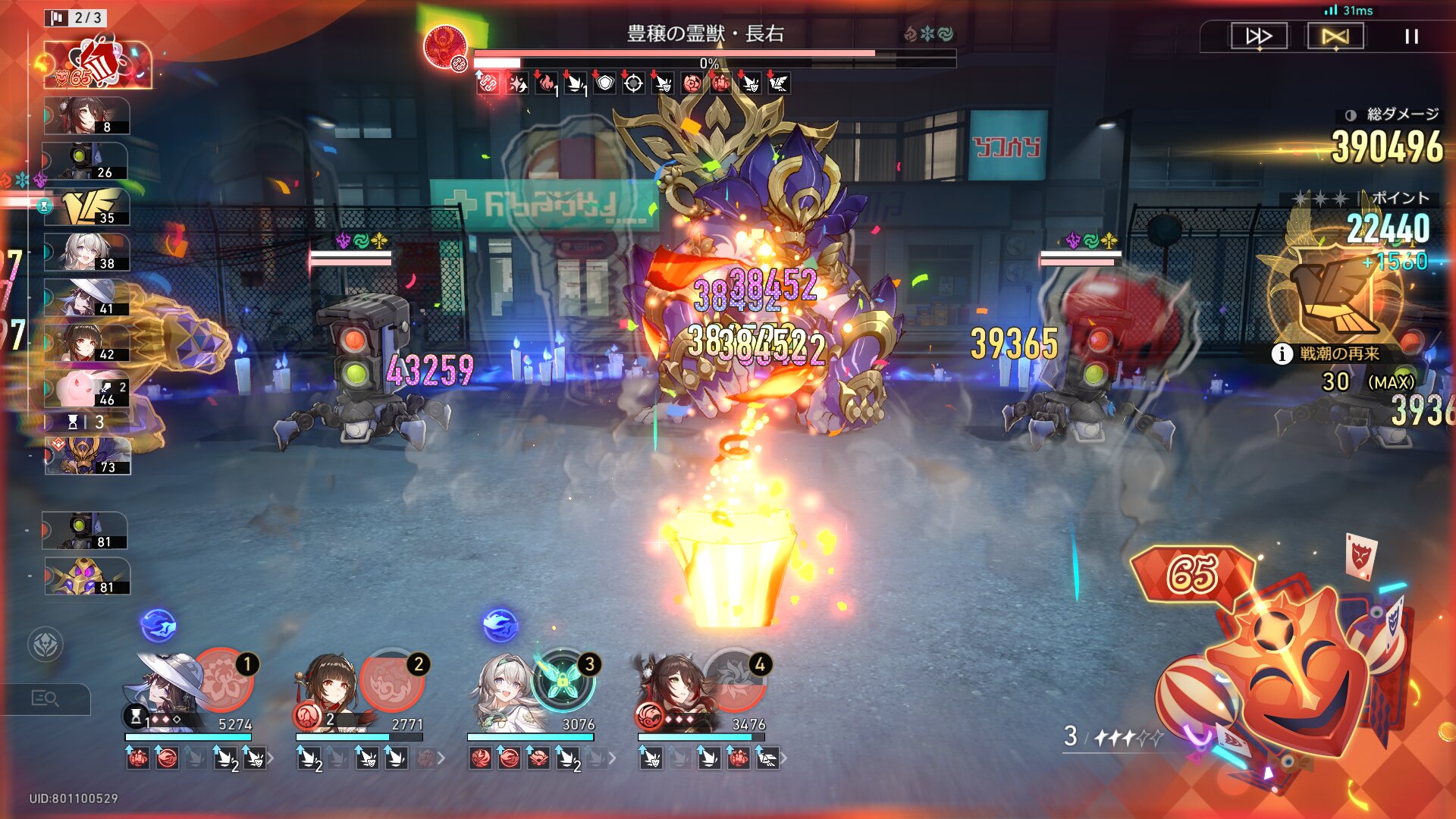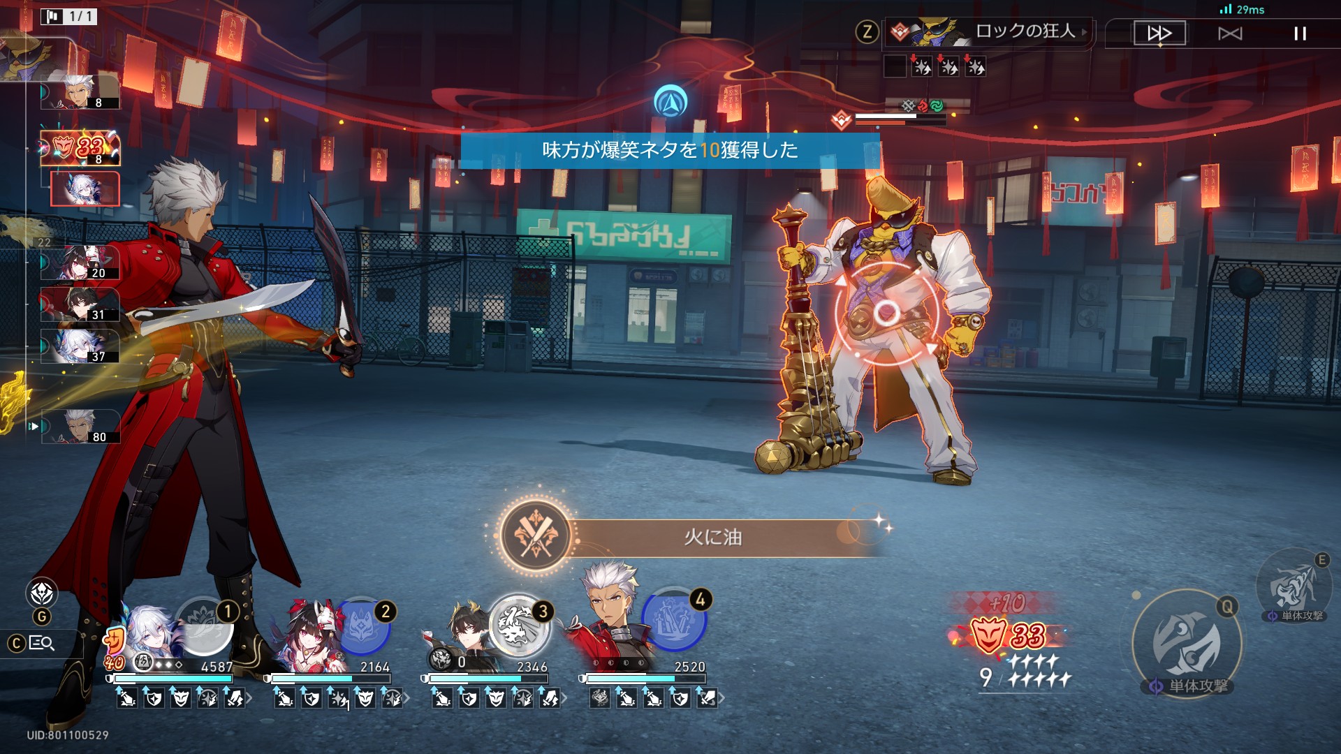 1度の戦闘で、味方の爻光が18回「大吉大利」を発動する